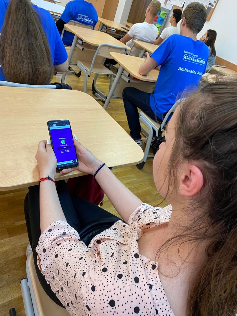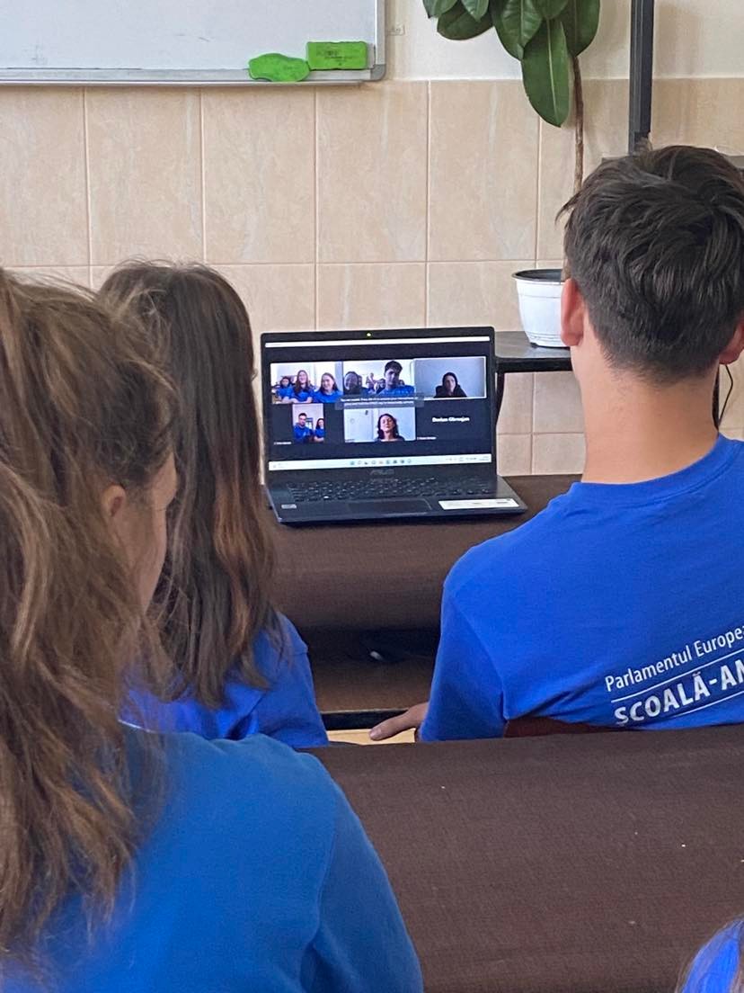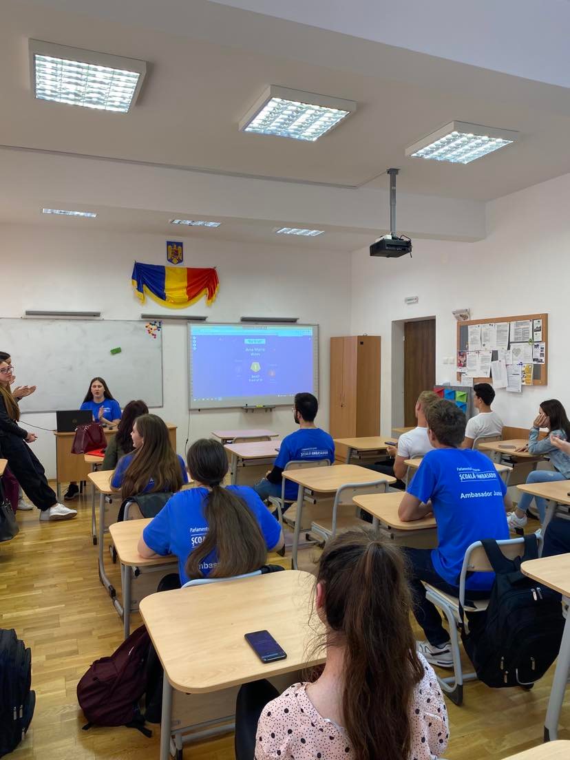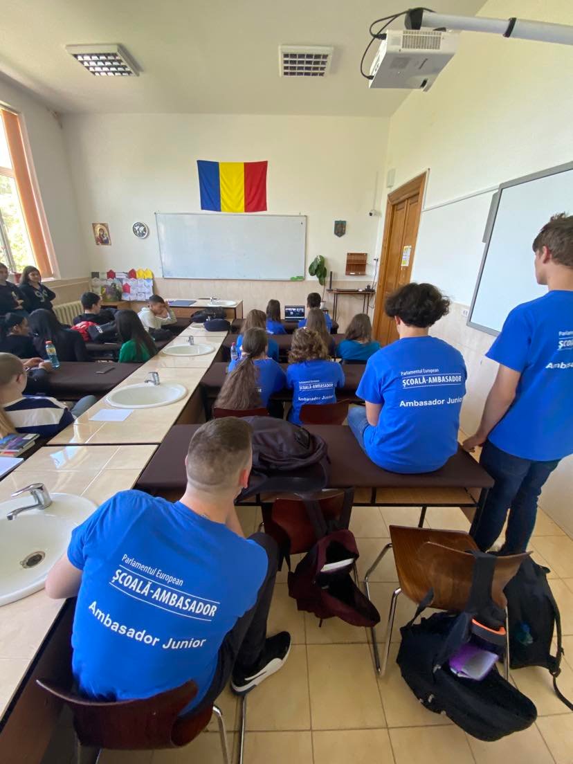 Activitatea nr. 2 – Întâlnire cu eurodeputatul Ramona Strugariu. Tematica aleasă de ambasadorii junior a fost “Îmbunătățirea sistemului de învățământ din România (Europa de Est) prin implementarea unor noi metode de actualitate practicate de țările mai dezvoltate din Europa și finanțarea acestora.”