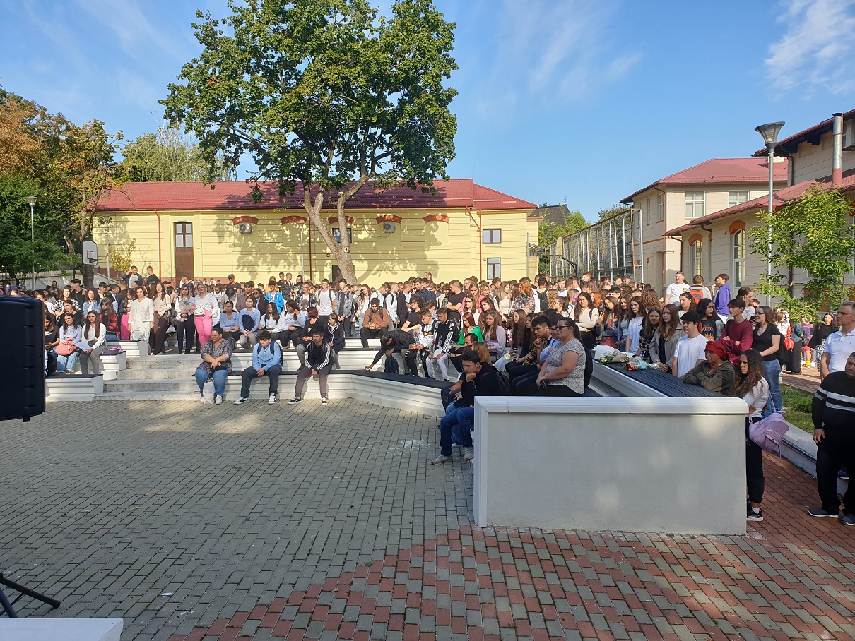 Festivitatea a debutat cu un moment solemn prilejuit de intonarea imnului României, urmat de discursul domnului director Georgel Șlincu și alocuțiunea domnului primar Dorin Alexandrescu.