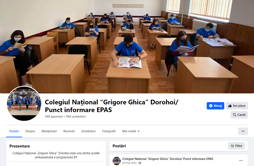 Vă invităm să vizitați punctele de informare din școală, dar și cele online( https://instagram.com/cngg_dorohoi_epas?igshid=1xditolyffqyn. Colegiul Național “Grigore Ghica” Dorohoi/ Punct informare EPAS, pag. Facebook Colegiul Național “Grigore Ghica” Dorohoi/ Punct informare EPAS) pentru mai multe informații despre Parlamentul European, Uniunea Europeană, dar și despre activitățile organizate și desfășurate în cadrul programului EPAS – „Școli Ambasador ale Parlamentului European“ de către echipa liceului. (prof. Monica Ifrim, coordonator program EPAS)