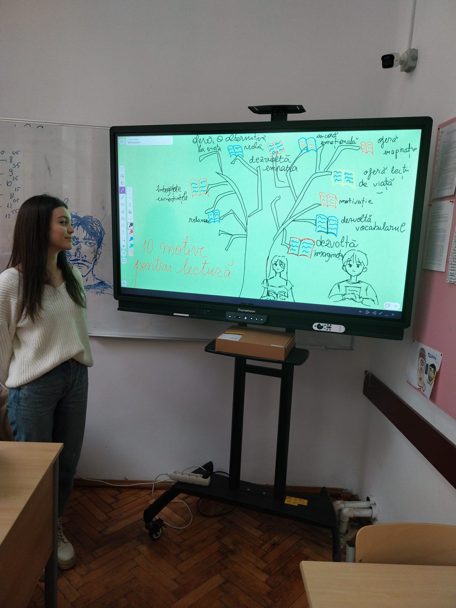 Imaginile de mai jos sunt grăitoare pentru atmosfera vibrantă și diversă din această zi, influențată de interacțiunile dintre elevi, cadre didactice și chiar personalul administrativ implicat. Pe ambele display-uri din cele două localuri au fost proiectate imagini sugestive, în concordanță cu evenimentul menționat, contribuind la crearea unei atmosfere pline de energie și entuziasm pentru a reitera importanța lecturii și a cărților în viața noastră.
