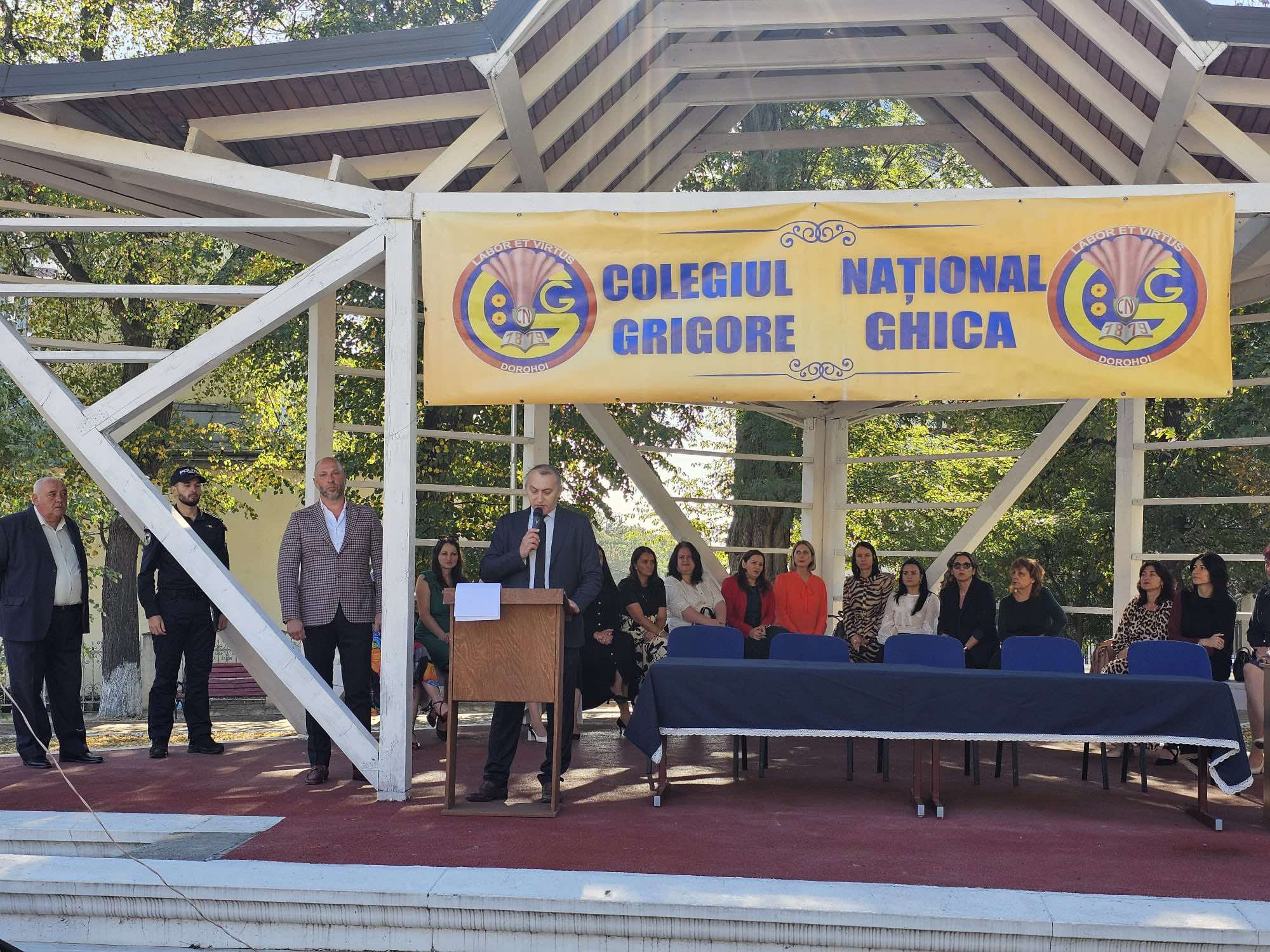 În ultimii ani școlari Colegiul Național “Grigore Ghica”, își desfășoară activitatea în cele două clădiri de patrimoniu, situate în centrul orașului, așa cum ii stă bine unei instituții de prestigiu din învățământul botoșănean și sper ca realizările voastre, dragi elevi, să se concretizeze în rezultate remarcabile la învățătură, un prim pas în reușita voastră personală și profesională. Iar voi, dragi colegi, să-i îndrumați și să le fiți permanent aproape în dezvoltarea lor.”