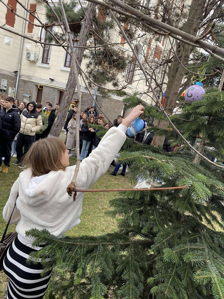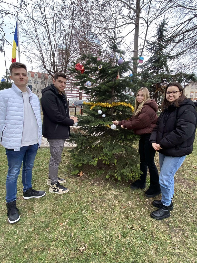 Bradul, socotit un simbol al sufletului, a fost înfrumusețat de către elevii colegiului, însoțiți de cadrele didactice, cu beteală și globuri. Dar nu orice fel de globuri, ci personalizate și împodobite cu bunătate, speranță, pace, armonie, iubire. Valori pe care sărbătoarea Crăciunului le aduce mai aproape de noi.