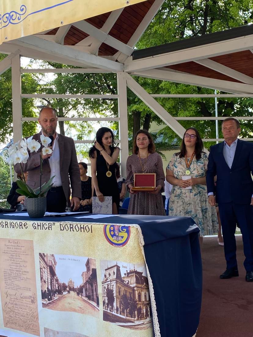 Invitat la festivitate, domnul primar al municipiului Dorohoi, ing. Dorin Alexandrescu, a urat mult succes elevilor din clasele a XII-a la examenul de bacalaureat, a felicitat elevii și corpul profesoral pentru realizările deosebite din anul școlar 2021 – 2022, oferind Diplome de Excelență celor patru olimpici cu rezultate meritorii obținute la olimpiadele școlare, etapa națională: Pintilei Sara, clasa a XI-a D, Locul I și calificare la Olimpiada Națională de Argumentare și Dezbatere “Tinerii Dezbat”, coordonator, prof. Ifrim Monica); Buțincu Adelina, clasa a X-a B, participare meritorie la Olimpiada Națională de Chimie, coordonator, prof. Nicorici Sonia; Chichioacă Alexia, clasa a X-a B, Premiul special OLAV, etapa națională, coordonator, prof. Hură Mihaela; Poraicu Alin, clasa a IX-a B, Locul I și calificare la Olimpiada Națională de Tehnologia Informației, coordonator, prof. Drăghici Cristina.