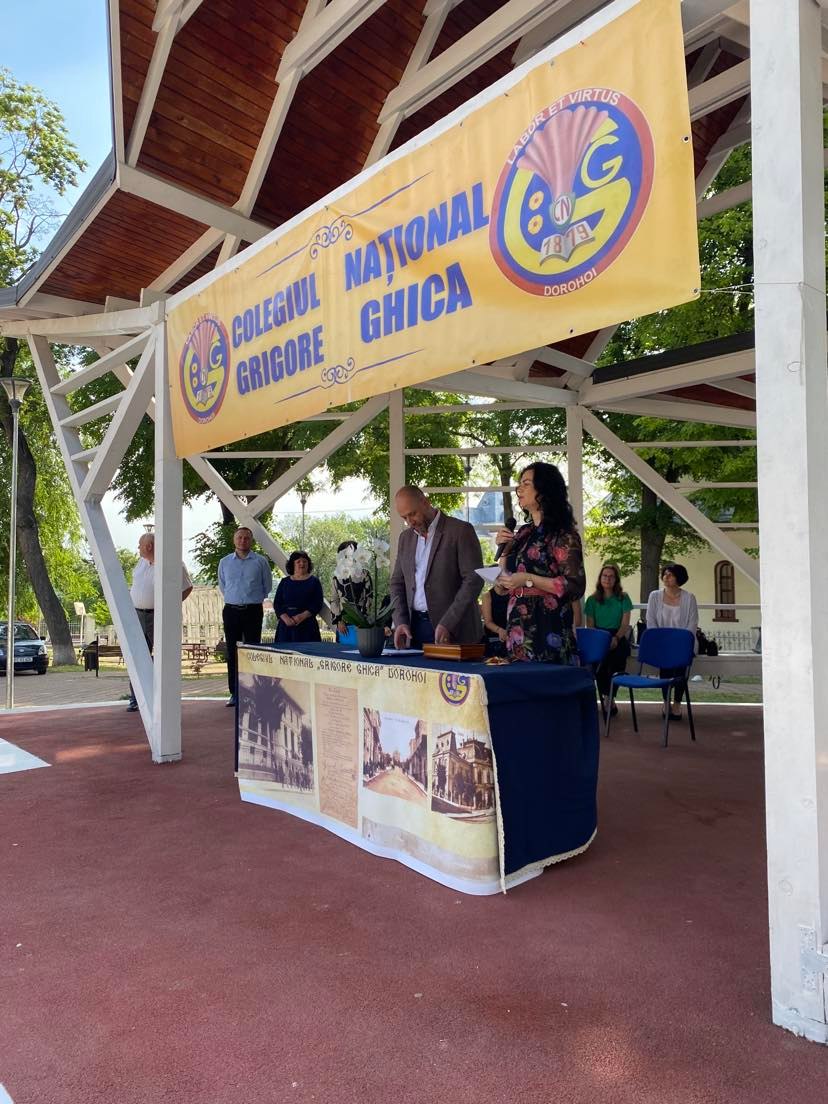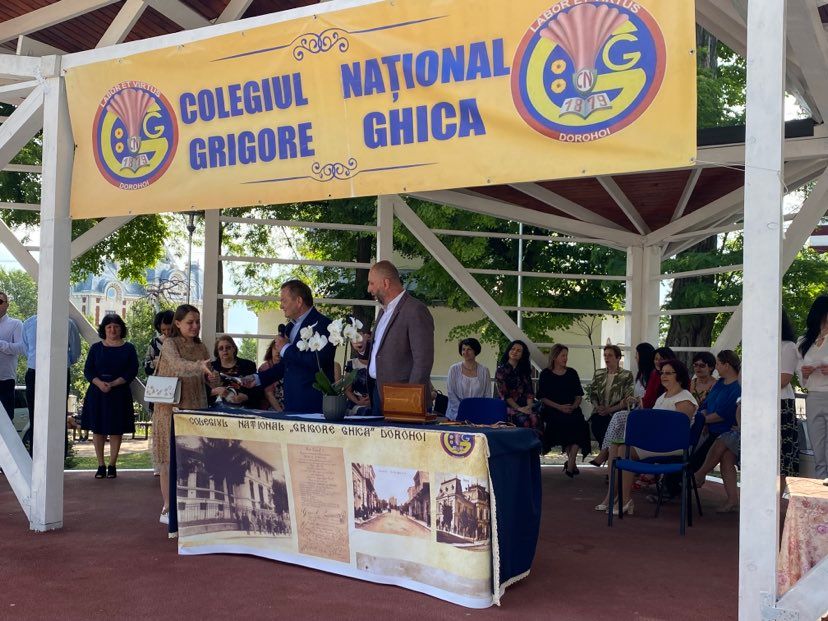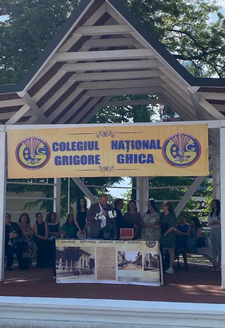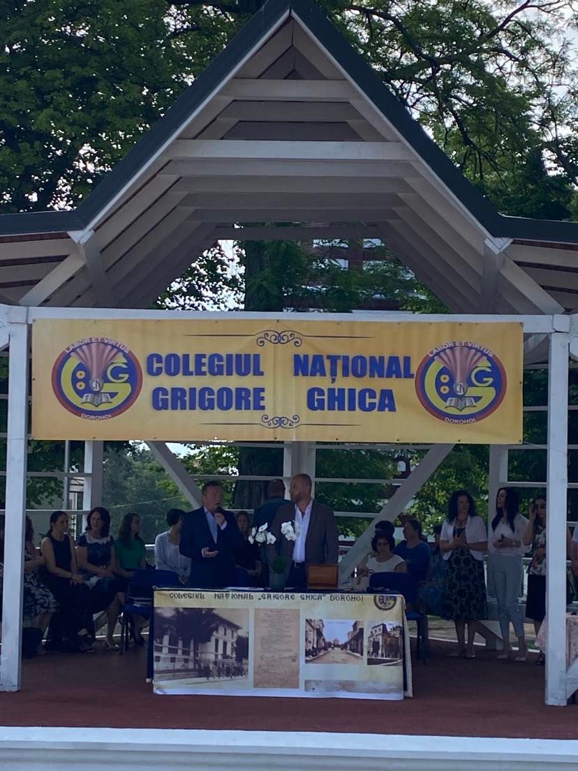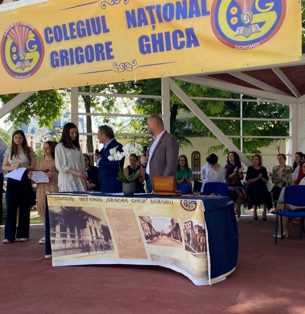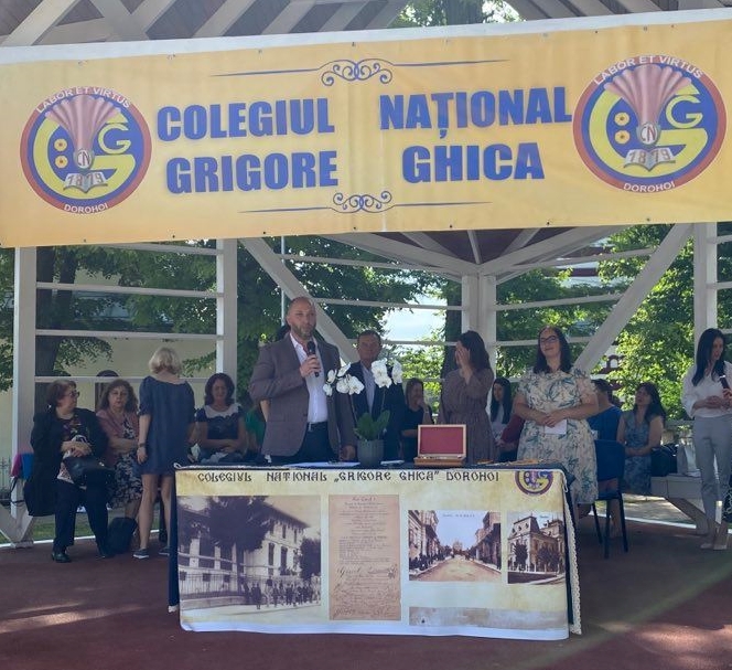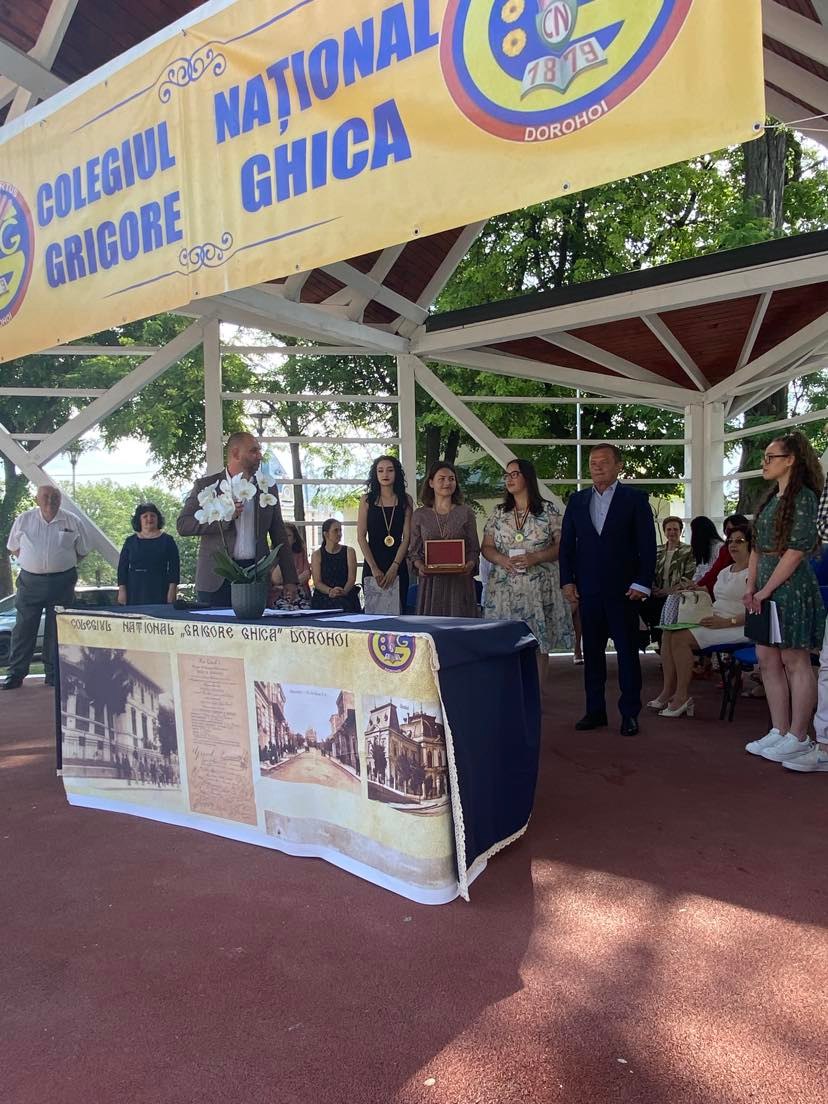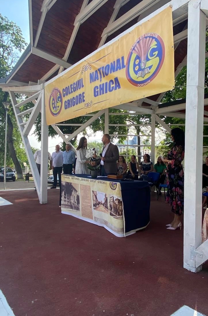 Domnul director al Colegiului Național “Grigore Ghica” Dorohoi, profesor Șlincu Georgel, a evidențiat realizările anului școlar 2021 – 2022 (instalarea în cel mai frumos local din județ, derularea unui număr mare de proiecte școlare și extrașcolare, participarea, cu reușite deosebite, la olimpiadele școlare, etc) transmițându-le celor prezenți gândurile domniei sale: “Pentru toate motivele de bucurie pe care ni le-ați oferit, dar și pentru răbdarea și implicarea de care ați dat dovadă…, vă felicit din toată inima și vă mulțumesc.“